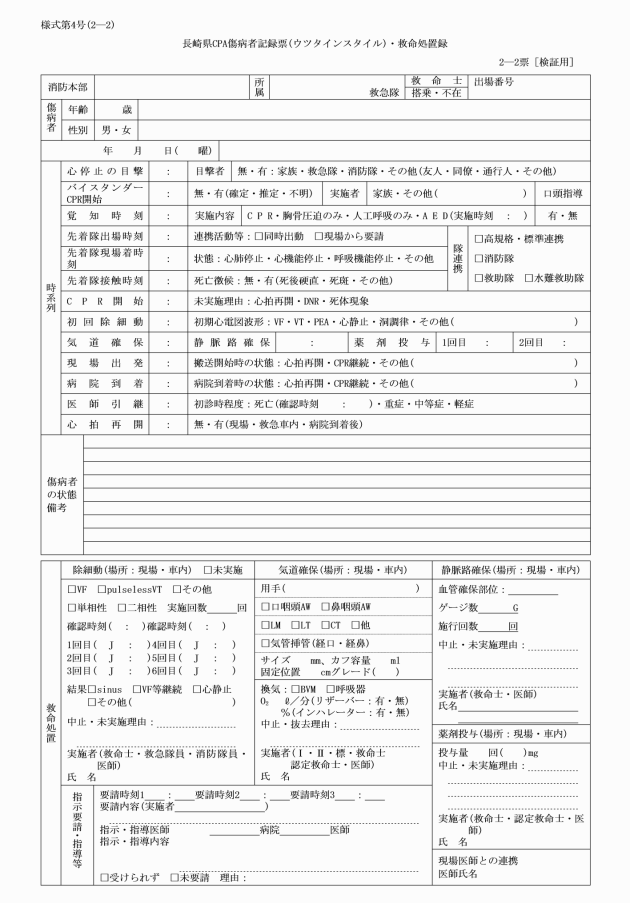 2 救急救命士は、救急救命士法第44条に定める特定行為を行つたときは、長崎県版救急活動記録票兼出場報告書及び長崎県CPA傷病者記録票(ウツタインスタイル)・救命処置録(様式第4号)に記録し署長に報告するとともに、これを5年間保存するものとする。
