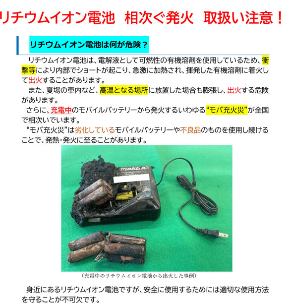 ※ モバイルバッテリー「リコール製品のモバイルバッテリーから発火」(nite映像資料)