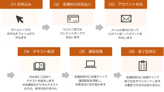 • 本講習はインターネットを利用してご提供しています。講習の際のパケット通信料は、受講者負担となります。