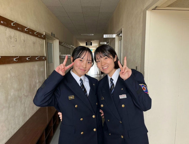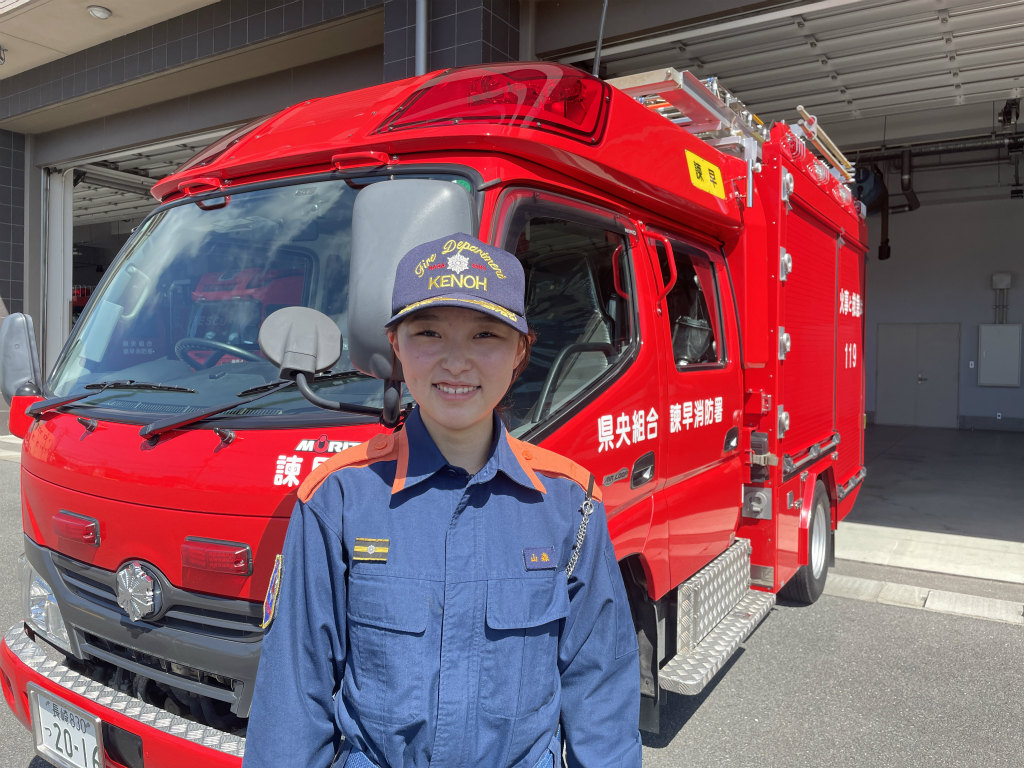 メッセージ:救急現場では、女性隊員だからこそ話しやすく安心する患者さんもいますし、消防士は力仕事のイメージが強い職業ですが、男性・女性が力を合わせることで、市民の皆様への安心感が増すと思います。これまで以上に女性が活躍できる場所を、私たちと一緒につくっていきましょう。